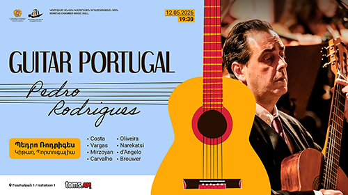Մայիսի 12-ին՝ ժամը 19։30-ին, Կոմիտասի անվան կամերային երաժշտության տանը տեղի կունենա պորտուգալացի հանրաճանաչ կիթառահար Պեդրո Ռոդրիգեսի մենահամերգը: Կհնչեն պորտուգալացի, կուբացի, իտալացի և հայ հեղինակների ստեղծագործություններ: