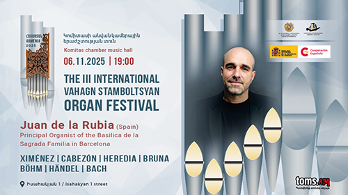 Բարսելոնի Սագրադա Ֆամիլիա բազիլիկայի գլխավոր երգեհոնահար Խուան դե լա Ռուբիան (Իսպանիա) նոյեմբերի 6-ին՝ ժամը 19:00-ին, մենահամերգով հանդես կգա Կոմիտասի անվան կամերային երաժշտության տանը՝ Վահագն Ստամբոլցյանի անվան երգեհոնային երաժշտության երրորդ միջազգային փառատոնի շրջանակում: