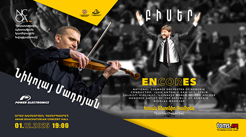 Երեկոյի մենակատարն է Գինեսի ռեկորդակիր և Հայաստանի Հանրապետության վաստակավոր արտիստ, փայլուն ջութակահար Նիկոլայ Մադոյանը, որի վիրտուոզ կատարումները կգրավեն յուրաքանչյուր ունկնդրի սիրտը։