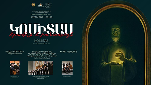 Դեկտեմբերի 9-ին` ժամը 19:00-ին, Կոմիտասի անվան կամերային երաժշտության տանը տեղի կունենա «Կոմիտաս՝ երաժիշտ և բանաստեղծ» խորագրով Երևանի պետական կամերային երգչախմբի համերգը։