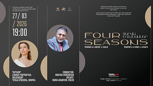 Հայաստանի պետական կամերային նվագախումբը մարտի 27-ին՝ ժամը 19:00-ին, հրավիրում է Կոմիտասի անվան կամերային երաժշտության տուն՝ միասին վայելելու համաշխարհային երաժշտության գլուխգործոցներից մեկը՝ Անտոնիո Վիվալդիի «Տարվա եղանակները»։