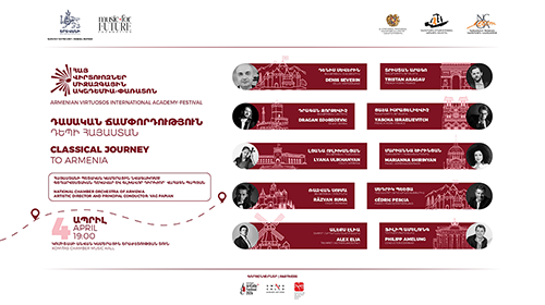June 28 - The opening concert. Performers: the founder of Koblenz International Guitar Academy and modern classical guitar technique, famous guitarist Hubert Kaeppel (Germany) and artistic director of the Yerevan International Guitar Festival, Chairman of the Yerevan Association of Guitarists, vice president of the Wuppertal International Association of Guitarists, laureate of international competitions, Doctor of Arts, Zhora Sargsyan.