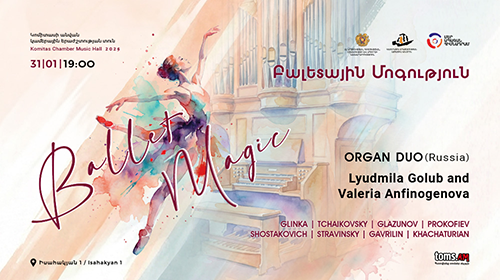 On January 31, at 7:00 PM, Russian organists Lyudmila Golub and Valeria Anfinogenova will perform with the project “Ballet Magic” at the Komitas Chamber Music Hall.