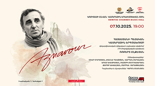 On October 2, at 19:00, a concert entitled “Aznavour: Eternal Melodies” will take place at the Komitas Chamber Music Hall, featuring the Armenian State Chamber Choir and the soloists.