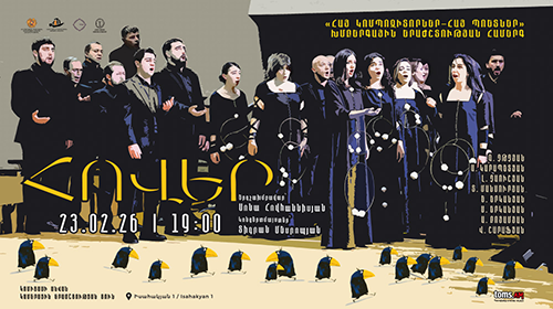 On February 23, at 7:00 PM, the Komitas Chamber Music Hall will host a choral music concert titled "Armenian Composers, Armenian Poets", performed by the "Hover" State Chamber Choir.