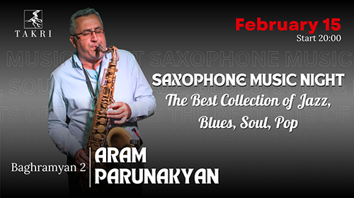 Saxophonist Aram Parunakyan will perform a program full of the most beloved world hits.