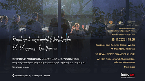 On November 25, at19:00, a concert of the male cast of the Yerevan State Chamber Choir will take place at the Komitas Chamber Music Hall.
